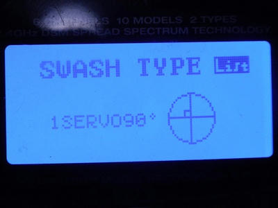 1.MODEL TYPEはHELIに設定します。 2.REVERSEは下記のように設定します。 赤枠注意:付属マニュアルには、ピッチは「Reverse」と記載されていましたが、 ピッチとスワッシュ動作を合わせるため、「Normal」変更しました。 3.SWASH TYPEは「1SERVO90°」に設定します。 以上です。